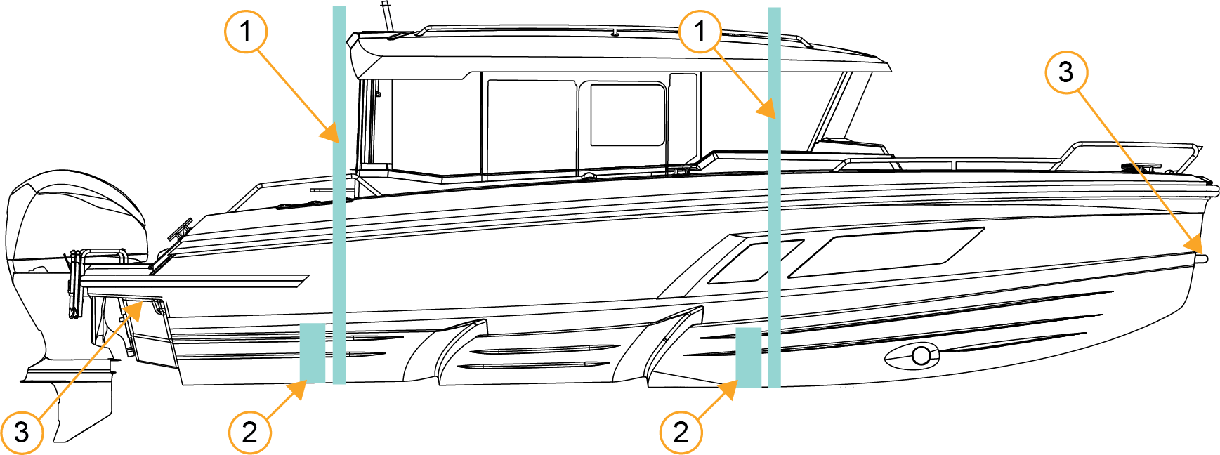 Place the trailer side supports approximately 10 cm in front of the straps and make sure that the boat does not sway sideways