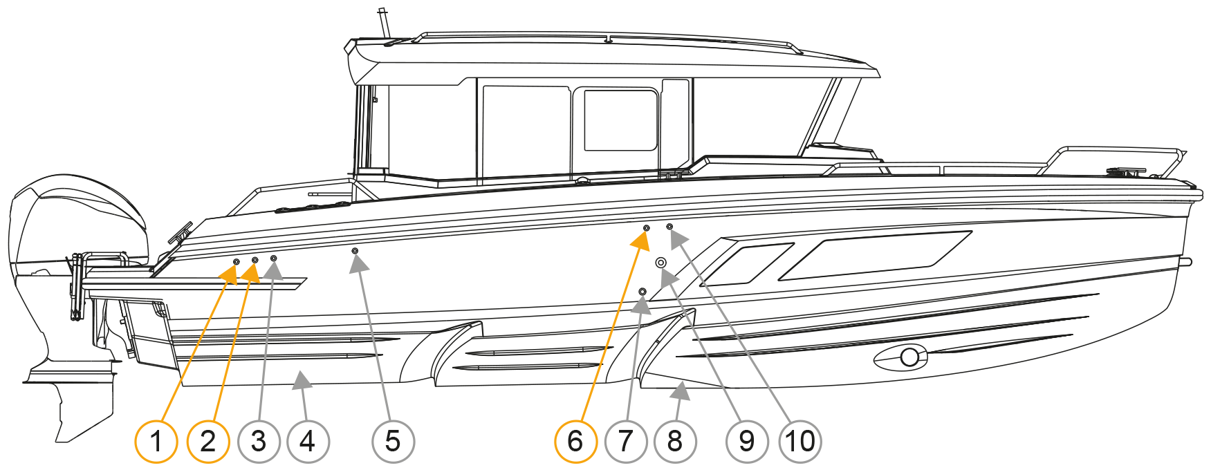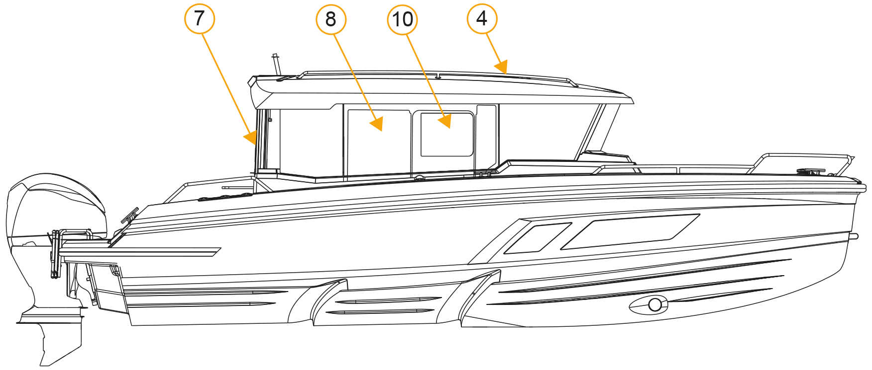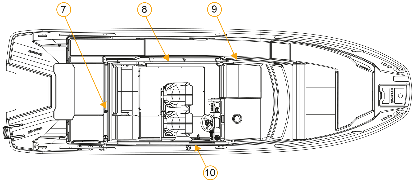 Järgmised joonised näitavad avade asukohta keres ja pealisehitistes (tekist kõrgemal).