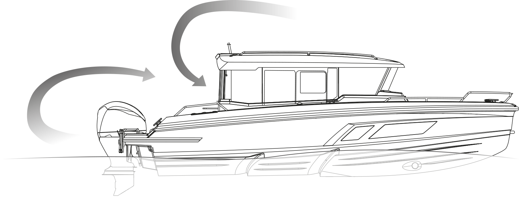 Kui paat on paigal või liigub aeglaselt ja tagauks on avatud, tekib tõmbetuul.