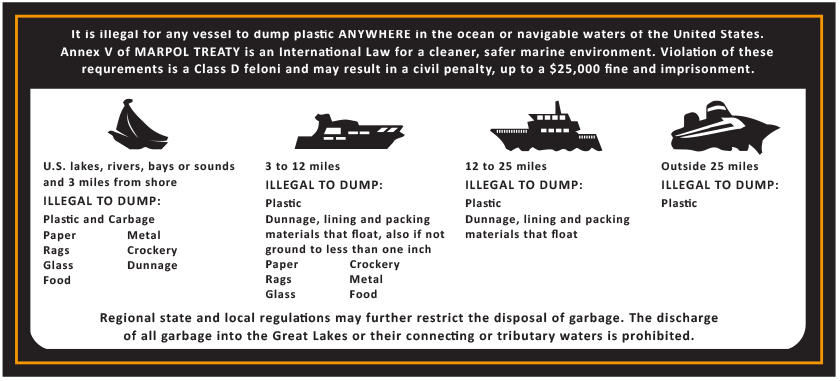 Jäätmete kõrvaldamise keeldude kirjeldus USA vetes. |