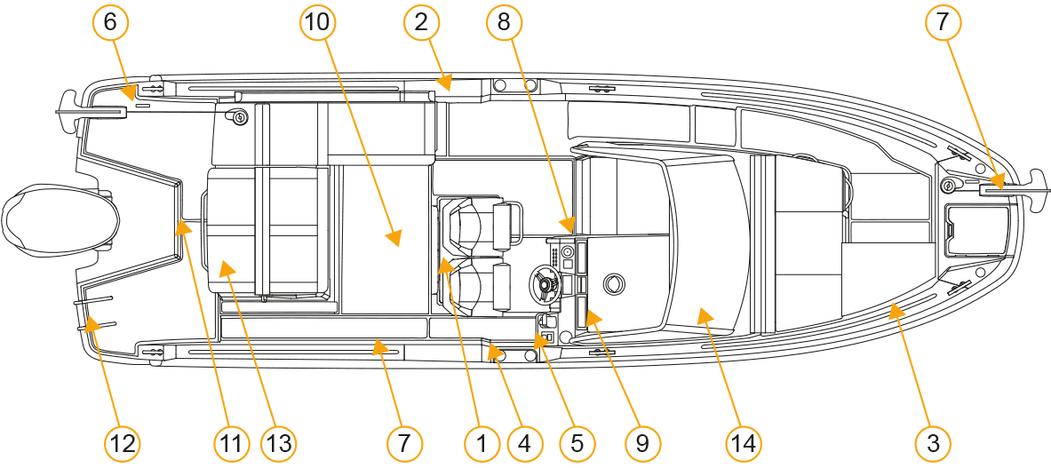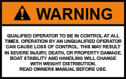 HOIATUS! Paati peab kogu aeg juhtima kvalifitseeritud kasutaja. Kvalifitseerimata kasutaja poolt kasutamine võib põhjustada juhitavuse kaotamise. See võib põhjustada raskeid vigastusi, surma või varakahju. Paadi stabiilsus ja käsitsemine muutub koos kaalujaotusega. Lugege enne kasutamist kasutusjuhendit. |