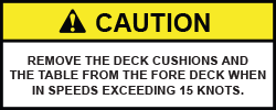 ETTEVAATUST! Kui kiirus ületab 15 sõlme, eemaldage vööritekilt padjad ja laud. |