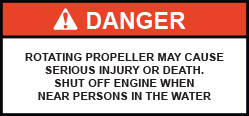 OHT! Pöörlev sõukruvi võib põhjustada raskeid vigastusi või surma. Kui paadi lähedal vees on inimesi, lülitage mootor välja. |