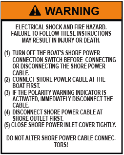 ETTEVAATUST! (See silt on kaldal oleva laadija jaoks, mida kasutatakse paadi akude laadimiseks kaldal asuva toite abil.) See seade ei sisalda oleku jälgimisseadet. Pärast pikselööki ei pruugi seade jätkata galvaanilise isolatsiooni pakkumist ja seega ei paku see elektrivoolu eest kaitset. Testimise juhiseid vaadake kasutusjuhendist. |