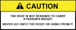 ETTEVAATUST! Katus ei ole mõeldud inimese raskuse kandmiseks. Ärge kunagi minge katusele ega rippuge selle küljes. |