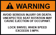 HOIATUS! Vältige rasket vigastust või surma. Istme ootamatu pöörlemine võib põhjustada sõitja väljakukkumist. Lukustage pöörel, kui kiirus ületab 4,3 sõlme (8 km/h). |