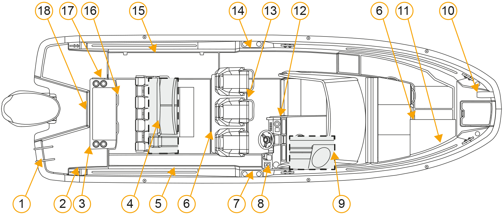 CAUTION Remove the deck cushions and the table from the foredeck when in speeds exceeding 15 knots. |